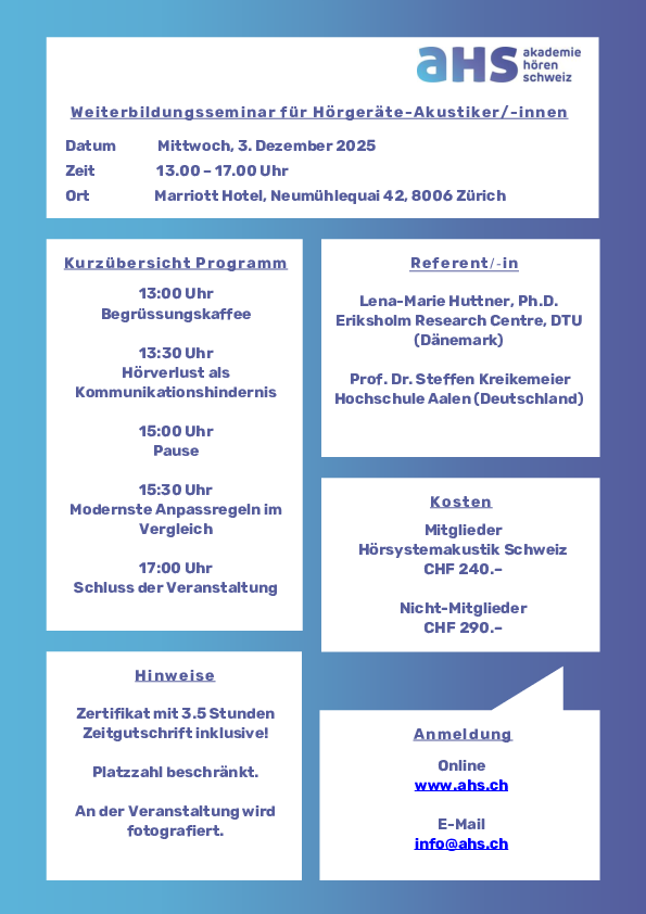 Erleben Sie spannende Fachvorträge zu aktuellen Themen der Hörsystemakustik: